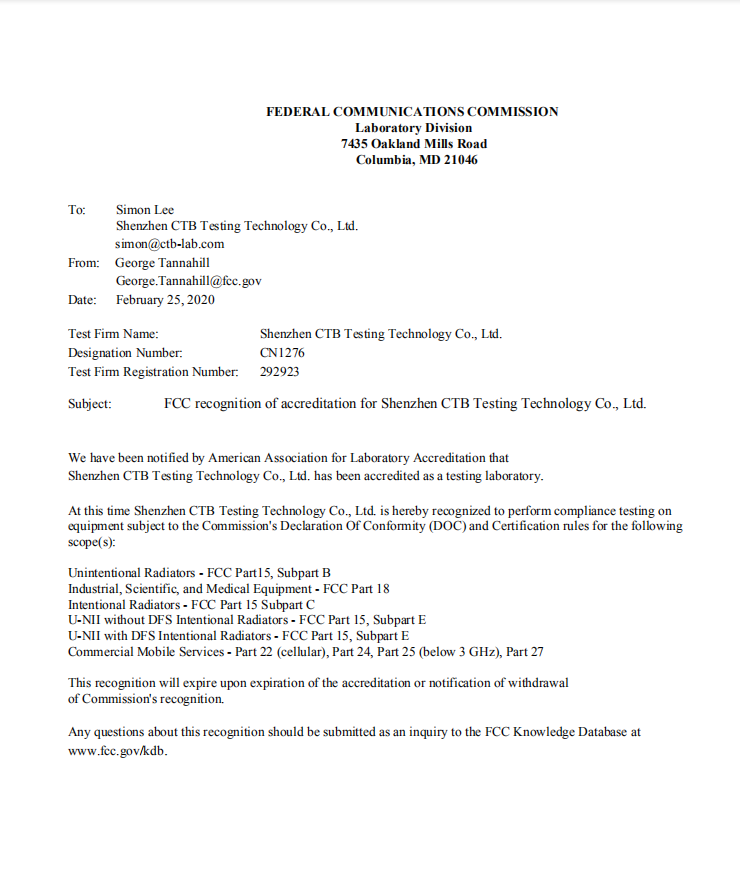 FCC授權(quán)書(shū)